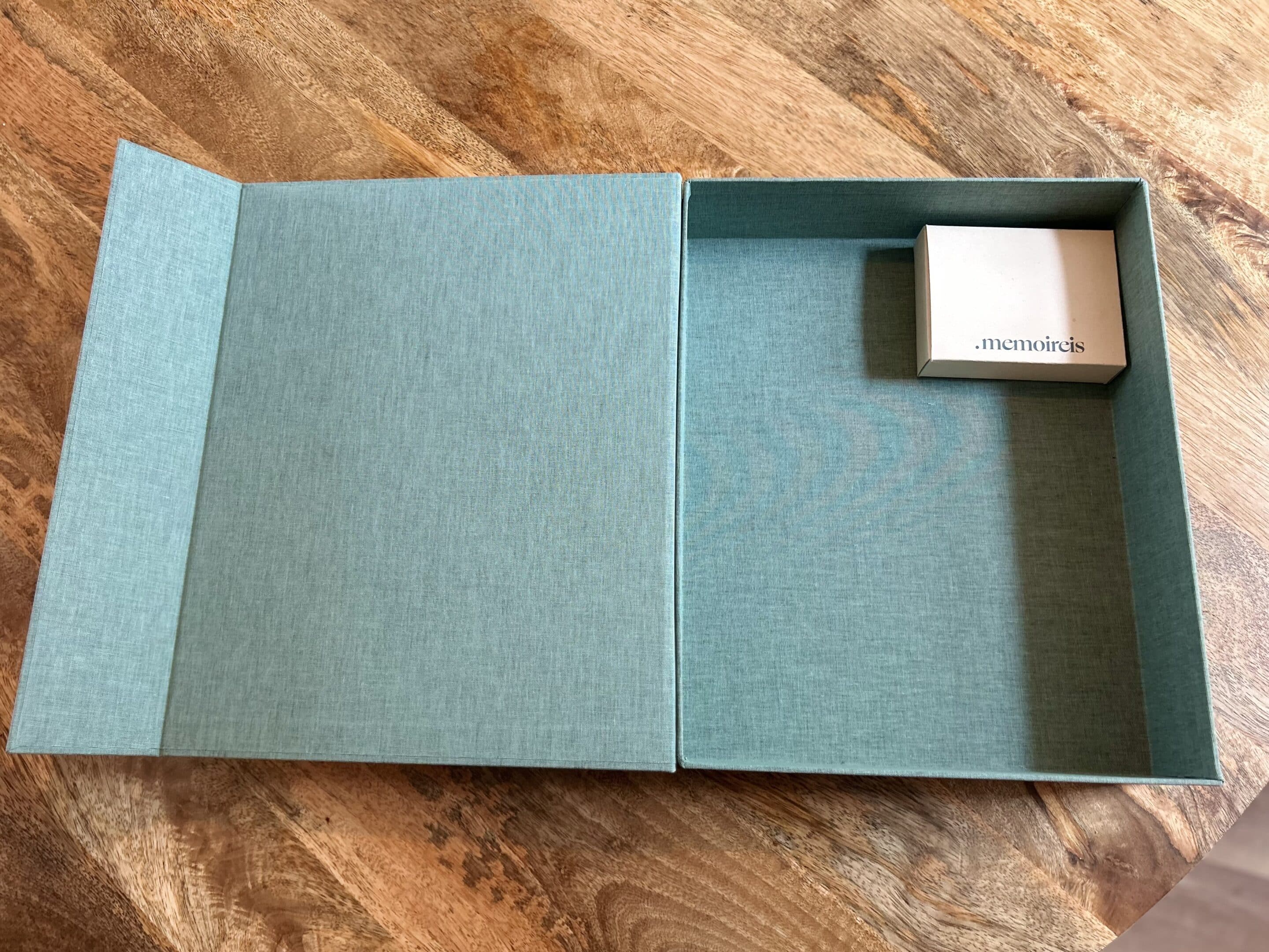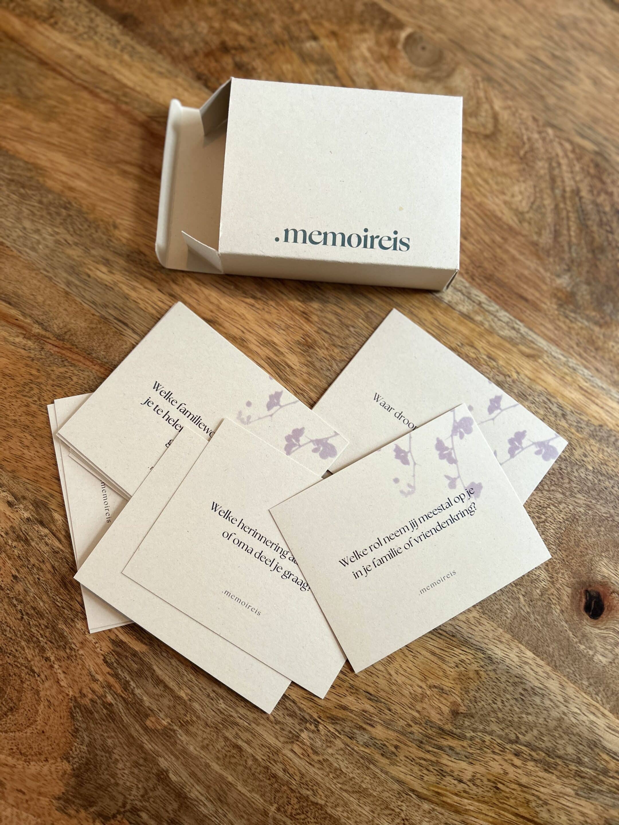 De Memoireis verhalenbox is een stijlvolle bewaar doos waar fysieke spulletjes in bewaard kunnen worden. Denk hierbij aan brieven, foto's, sierraden, of andere persoonlijke schatten die jouw verhaal compleet maken. De box maakt het ritueel van Memoireis nog betekenisvoller en biedt een veilige plek voor dat wat niet verloren mag gaan.